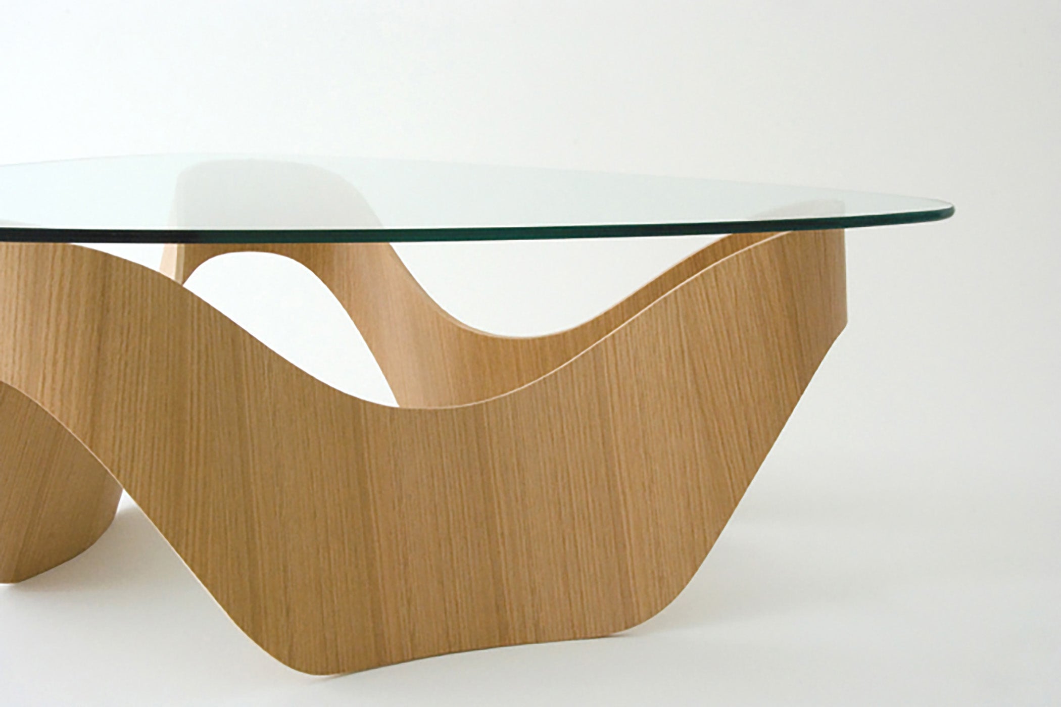 成型合板とガラスによるローテーブルのデザイン。